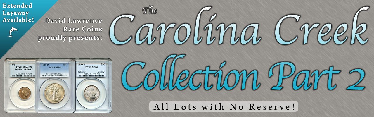 Virginia Beach, Virginia – David Lawrence Rare Coins (DLRC) recently offered Part 2 of the Carolina Creek Collection as the cornerstone of their 925th Weekly Internet Auction.