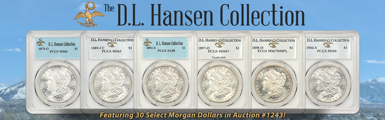 Auction 1243, which we JUST started, offers part one of high-grade selections from the Morgan Dollar series. We’re especially excited to offer this group as Morgan Dollars are one of the most popular collectible series. The Hansen Collection has slowly been moving up the ranks in the PCGS Registry Set of Morgan Dollars. This release is notable due to the scarcity of the offering of so many of these coins. Some of the featured coins in this group include an 1878-CC $1 PCGS MS66+, an 1879-O $1 PCGS MS66, an 1889-CC $1 PCGS MS63, an 1892-S PCGS AU58, an extraordinary 1897-O PCGS MS65+ ex: Vanderbilt/D.L. Hansen, plus many more! Also, be on the lookout for part two of this stunning Morgan Dollar collection in Auction 1244. We hope that you can take advantage of these limited opportunities to own pieces of what has quickly become the greatest collection of U.S. Coins ever assembled!