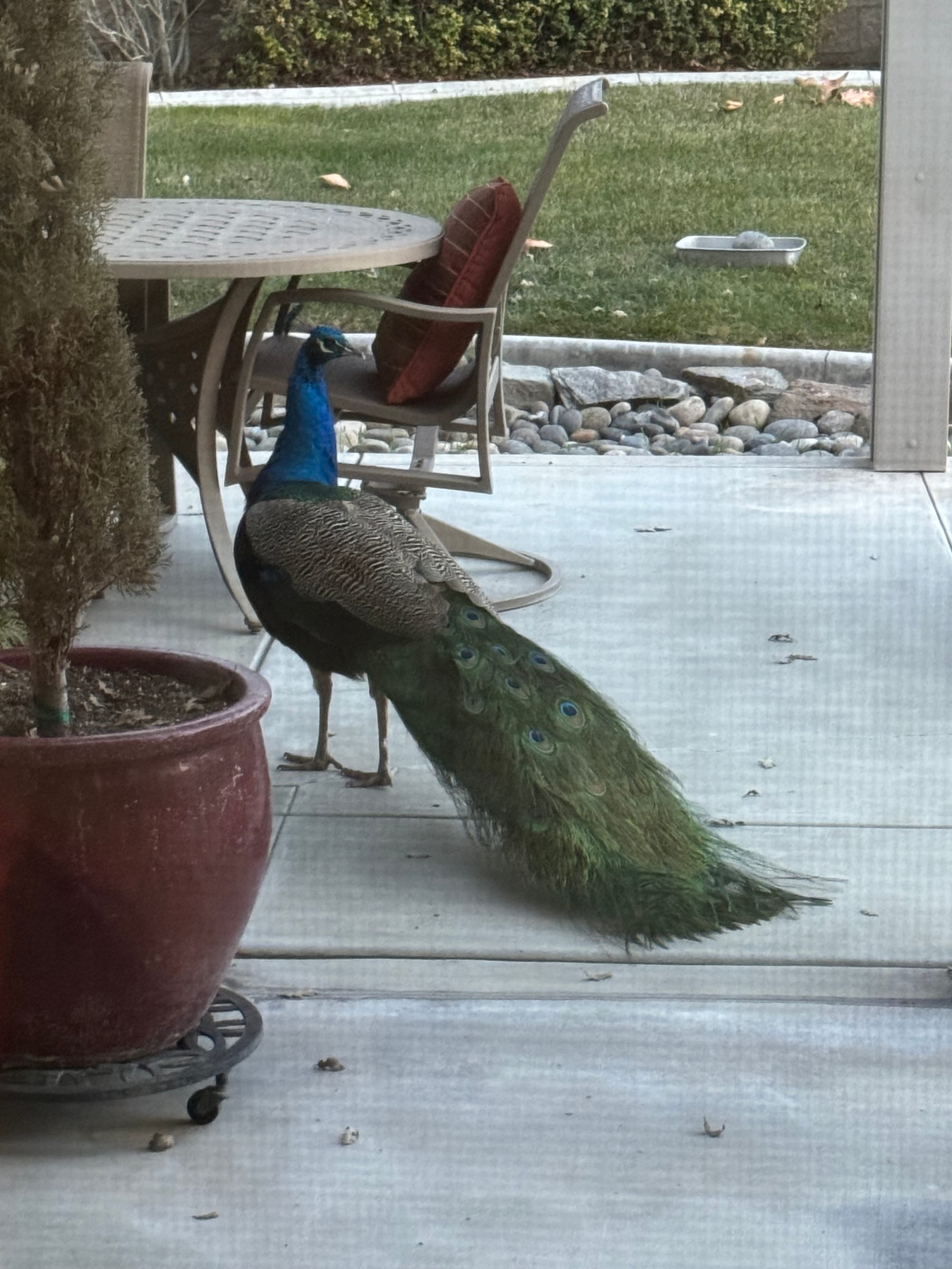 But, I have to share a true “first” that occurred to me on this visit. My friend has an adopted peacock that hangs out in their backyard. I’ve seen a lot of pets and interesting things on our travels before, but this was truly different than anything I'd seen before. I don’t think I’ll ever forget that bird, because it was affectionately officially named “Wes” in honor of my travel companion son!