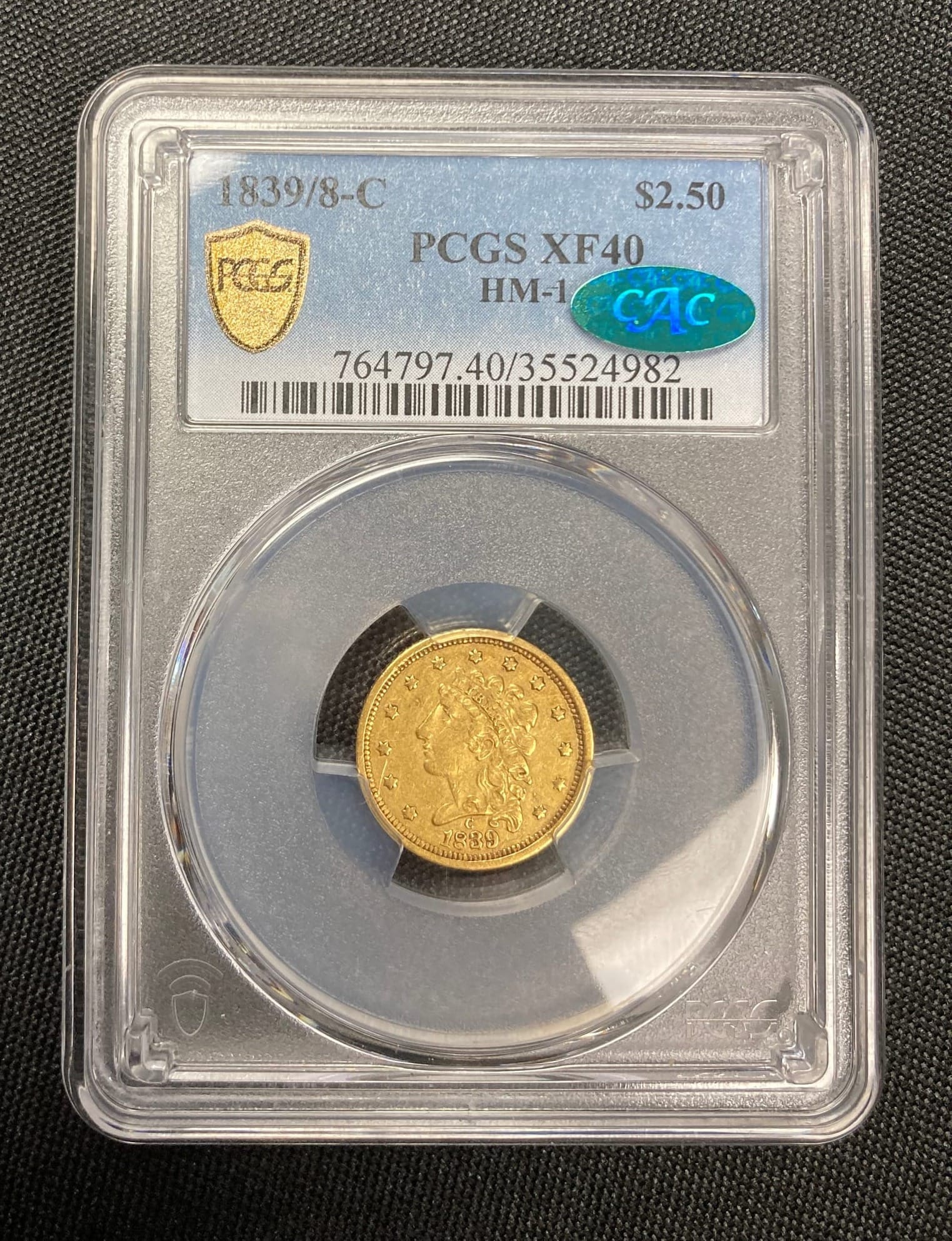 My favorite coin that I came home with was a coin I wasn’t even looking for. It found me! In dealing with one of our favorite new(er) dealers, I came across a rather esoteric Charlotte gold issue, an 1839/8-C $2.5 PCGS/CAC XF40. Now, it’s not a coin that I think anyone would pinpoint as a key issue, but if you look at past auction appearances, there have only been a few in recent years, but only a single example was CAC-approved. This opportunity to snag the underrated variety was certainly not expected at this show, but I was thrilled to walk away with another coin to fill a hole in one of the variety-based sets in the D.L. Hansen Collection.