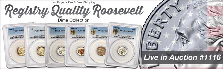 Value: The PCGS Price Guide puts this piece at $7,000. Part of the Registry Quality Roosevelt Dime Collection, we’re starting the auction at $5,750, ending this Sunday. The only auction record for an MS68 Full Bands example of this date realized $8,050 in 2009. Perfect for a registry set, you likely won’t see another one of these anytime soon!