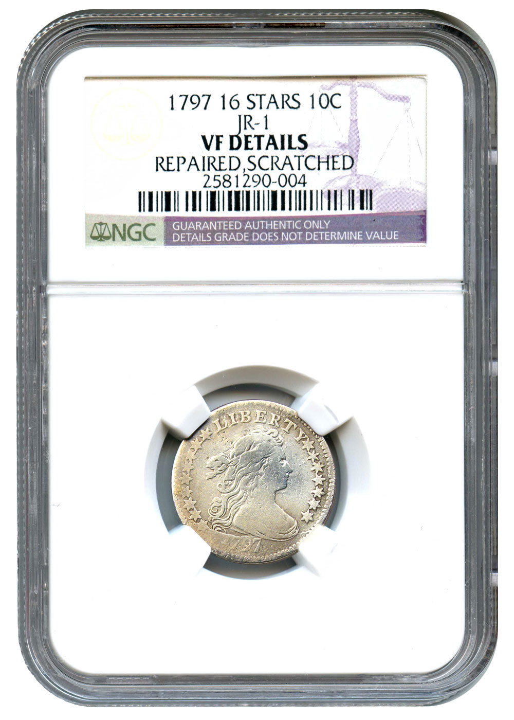 1797 10c NGC VF Details (Scratched, Repaired, 16 Stars)