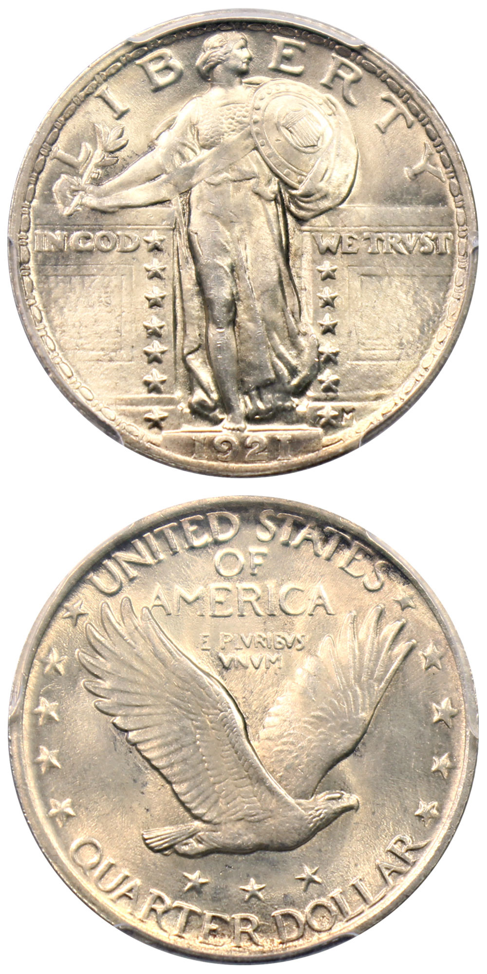 Why we love it: We love this date of Standing Liberty quarter in all grades, so we particularly have an appreciation of when it comes available in such superb condition as this coin. Beautiful satin luster envelops both sides of the coin and shines through faint shades of apricot and cream toning. All of its full head designation attributes are sharp and unquestionable. Considering there are all of four coins finer at PCGS, this coin is the final stop for most collectors seeking the date.