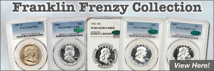 Why we love it: One of the premier highlights from the Franklin Frenzy Collection, this flashy cameo proof is tied with two others for the finest known example for the date. The surfaces are boldly reflective with nicely frosted devices, creating a stunning white piece. The first year for Franklin half proofs and a relatively low mintage, this is one of the keys of the series.