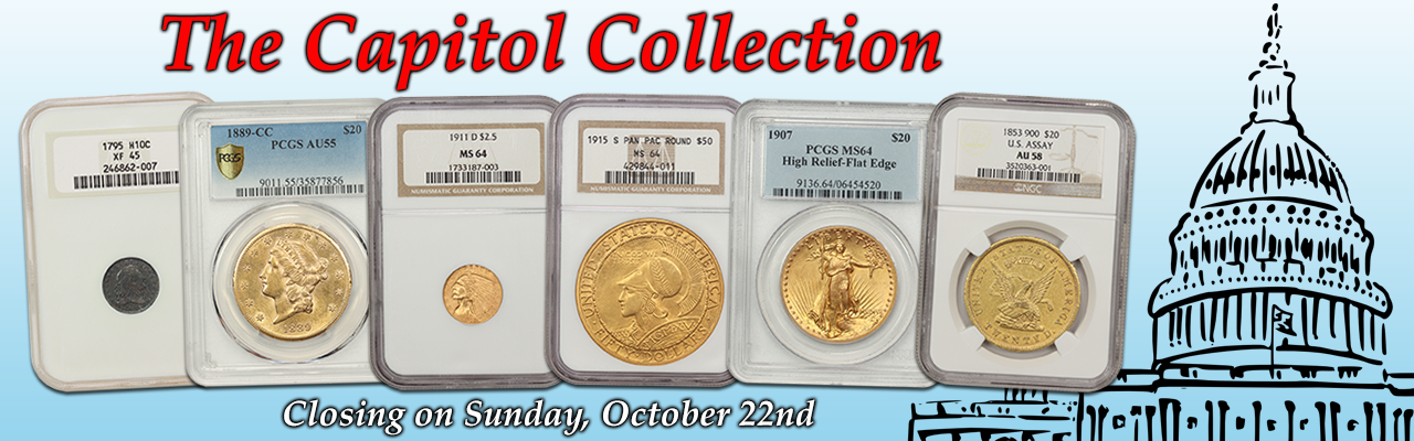 Worth mentioning this week, is the huge auction highlight ending this Sunday evening, The Capitol Collection! This group of coins comes to us from one of our favorite collectors in Northern Virginia. A wide array of numismatic pieces, it’s worth checking out! While they are offered with minimum bids, they all come in very reasonably and might just fill some interesting holes in your collection!