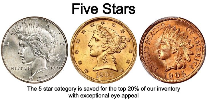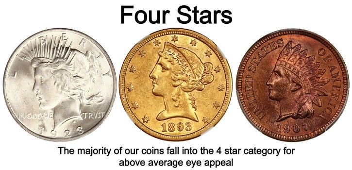 You typically won't find any coins on our website below a 3 star rating, simply because we don’t want to offer our customers coins we see as below average. We strive to offer the highest quality of coins and provide accurate images and descriptions of inventory.