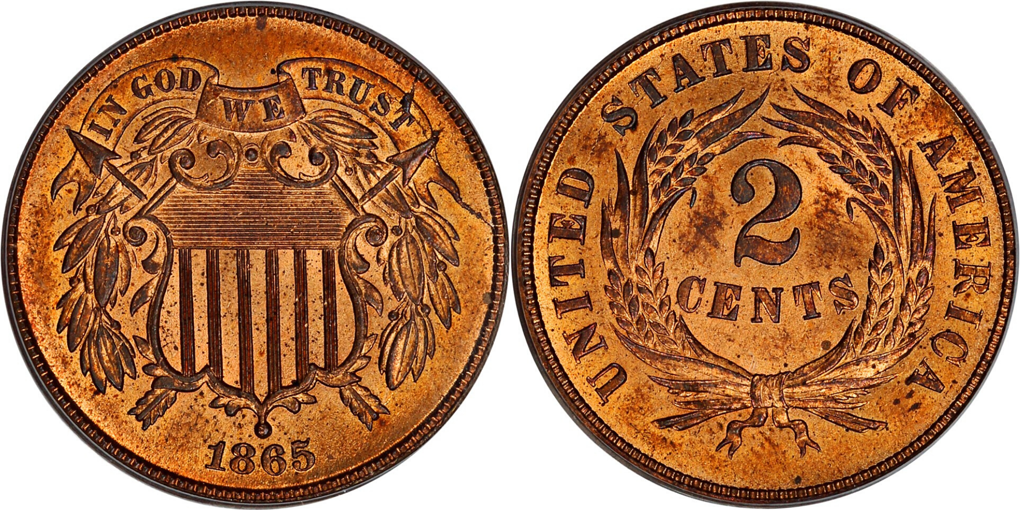 An inspiring motto to our coinage was first suggested in late 1861, near the beginning of the Civil War when things looked bleak for the North. The phrase ultimately selected was “In God We Trust,” which made its debut in the last year of the war. Now the phrase is on all of our coins and is the official motto of the United States. If you own a two cent piece, you own a piece of that story.