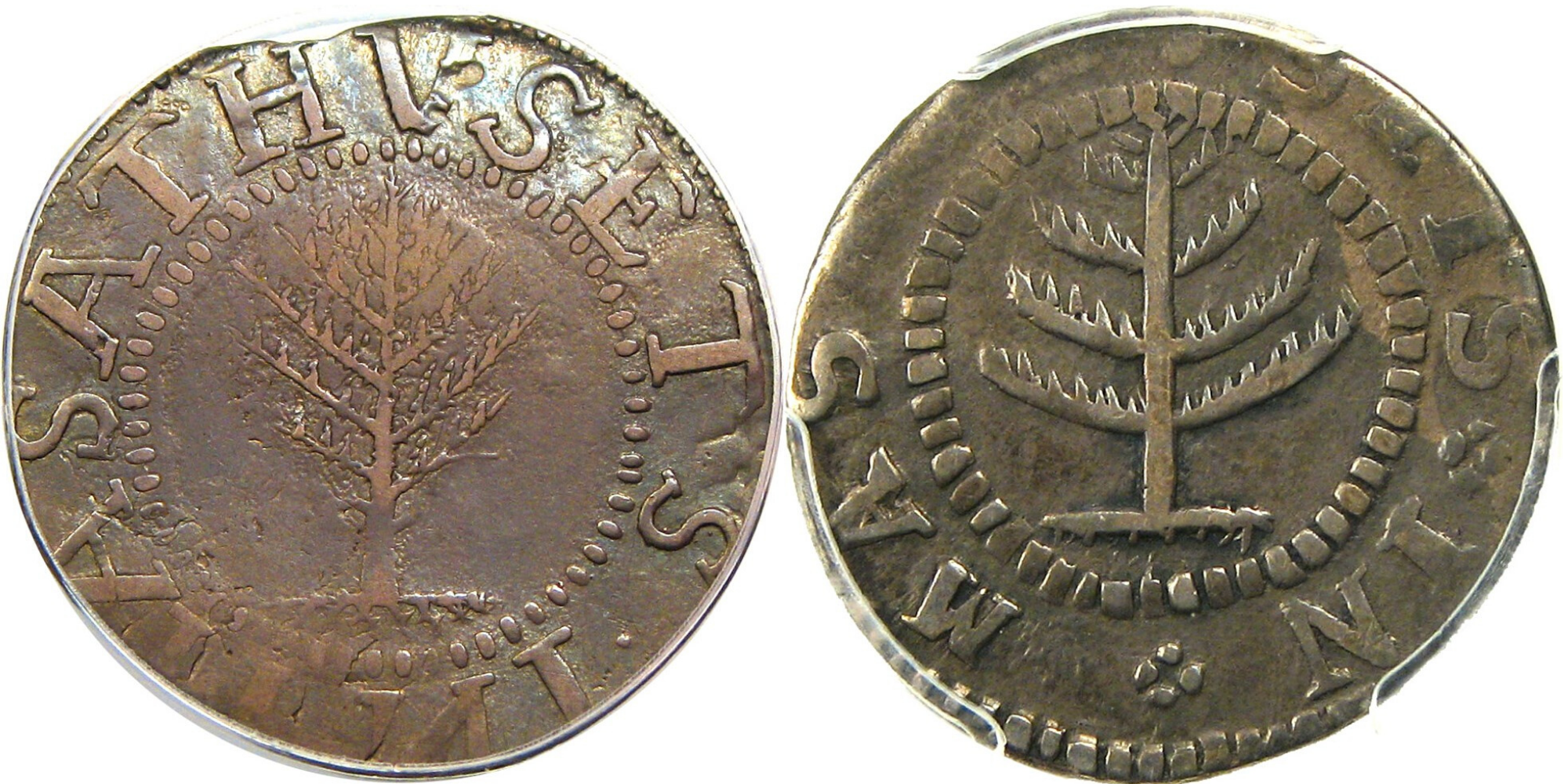 Minted in Massachusetts, these are the same type of coin but even the untrained eye can spot the inconsistencies between them. The trees in the center are completely different styles, and the dotted borders surrounding them are varying weights. You won’t find this type of wild die variation in modern issues but it’s just one example of how a curious new collector can enjoy exploring the nuances of coin diversity and design as they build a collection that speaks to them.