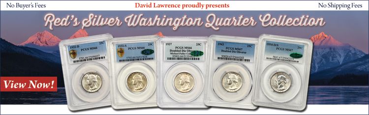 Please be sure to check out these and other highlights as well in DLRC Auction #1109, ending Sunday, March 22 at 8:00 PM, EST. For more information regarding the Red’s Silver Washington Quarter Collection or to place a bid, please call 800-776-0560 or email us at coins@davidlawrence.com