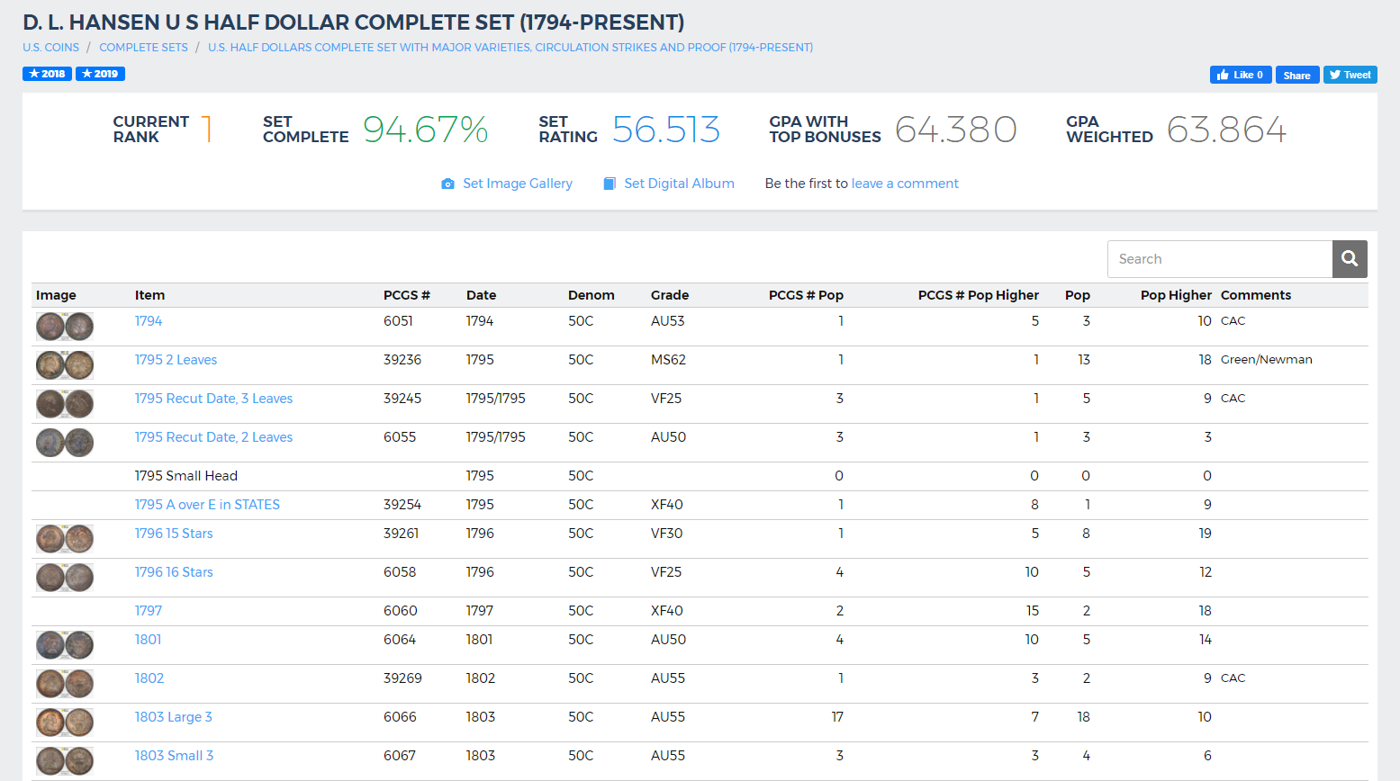 One of the biggest perks of registry sets is that they’re free. PCGS and NGC are both are completely free to use and enter your coins. The American Numismatic Association (ANA) has also announced that they will introduce a new coin registry of their own later in 2020. If most of your collection is graded, this can take the place of expensive software or complicated spreadsheets. They also pull in population data so you can clearly see how your coins rank without leaving the page.