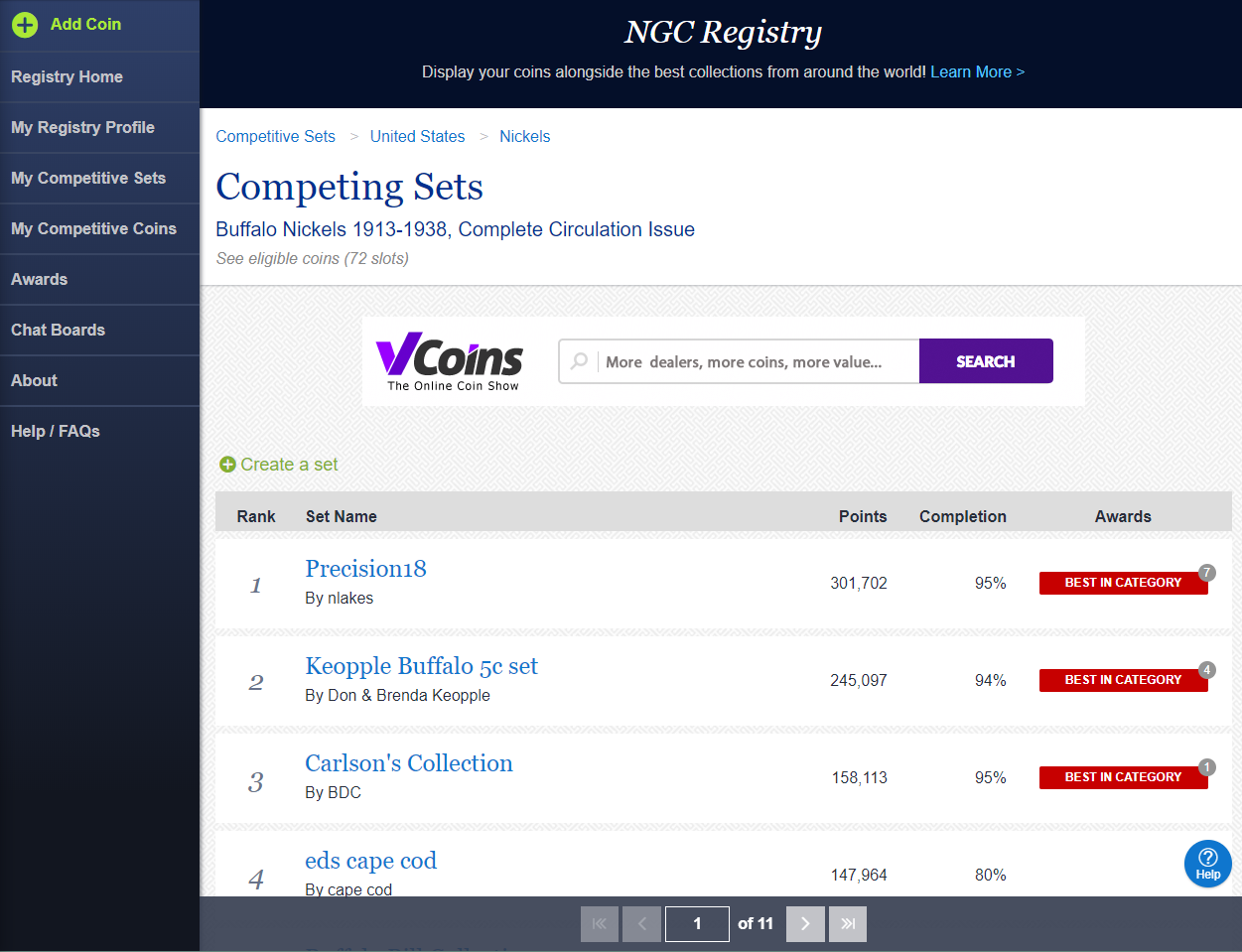 One of the added bonuses of registry sets is the social aspect. You’re able to make your set public and let others view it. It’s a great way to show off the collections that spend most of their lives in a safe or safety deposit box without risking the security of your coins. You can add comments on particular pieces to share the fun stories behind them, essentially creating a small exhibit of your set.