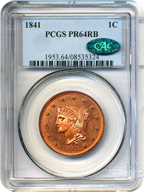 1. 1841 1c PCGS/CAC Proof 64 RB