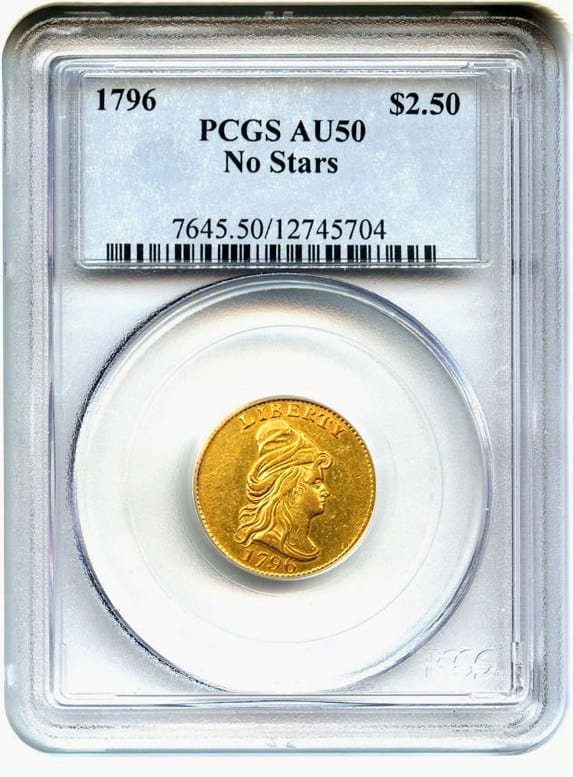 9. 1796 $2 1/2 PCGS AU50 (No Stars)