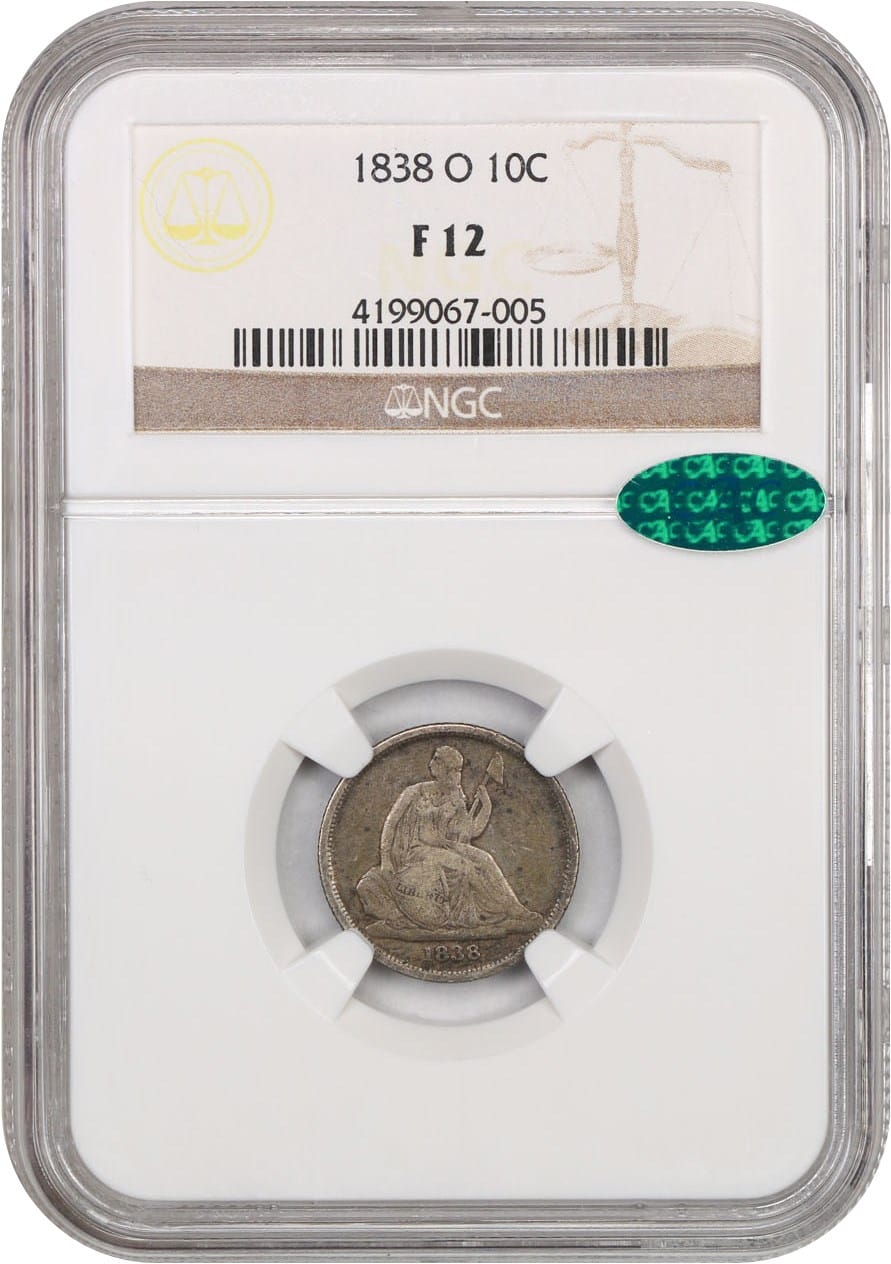 5. 1838-O 10c NGC/CAC F12 (No Stars)