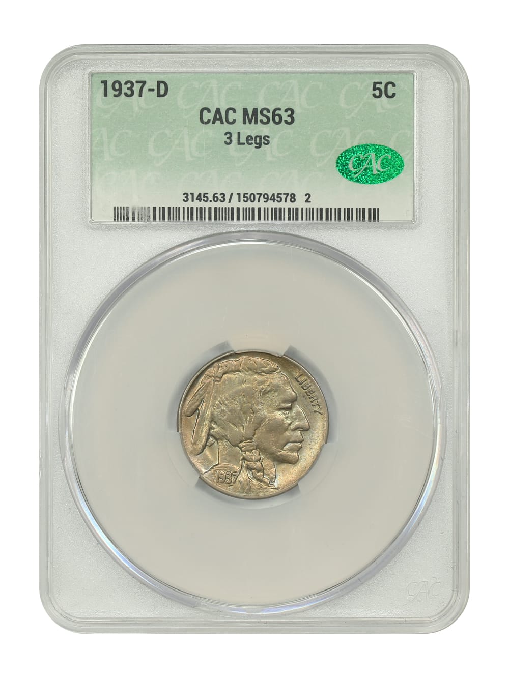 4. 1937-D 5C CACG MS63 (3 Legs)