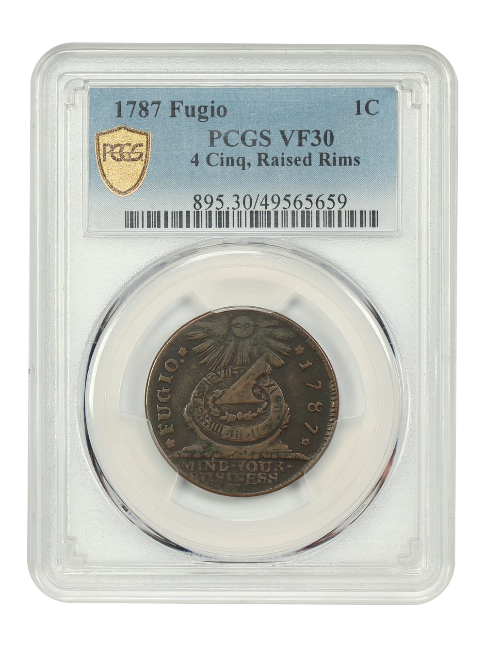 12. 1787 Fugio PCGS VF30 (4 Cinq, Raised Rims)