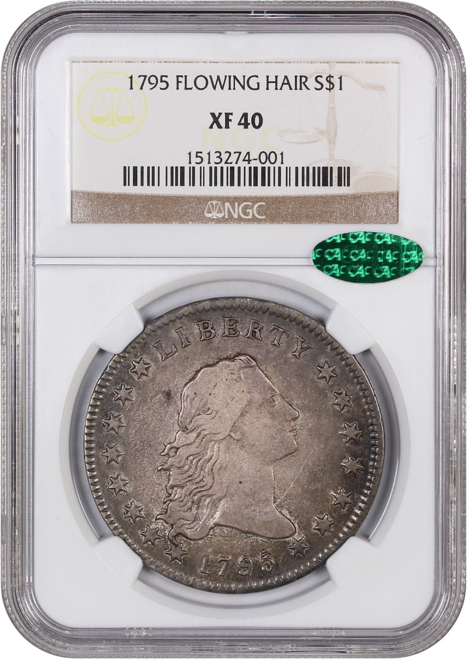 6. 1795 Flowing Hair $1 NGC/CAC XF40 (Flowing Hair, 2 Leaves)