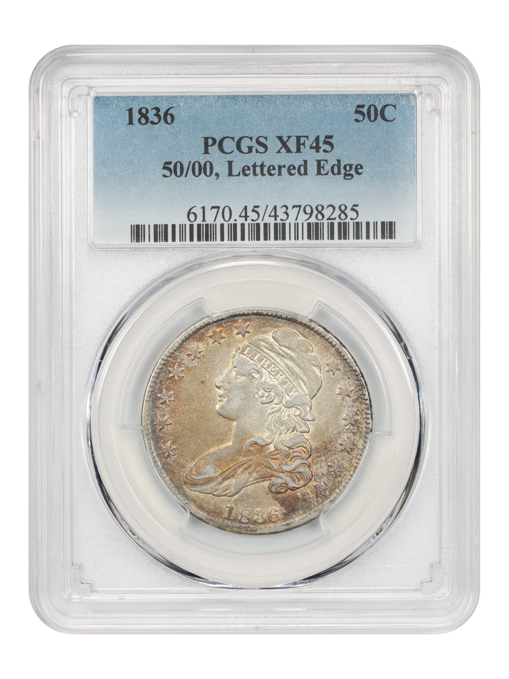5. 1836 50c PCGS XF45 (Lettered Edge, 50/00)