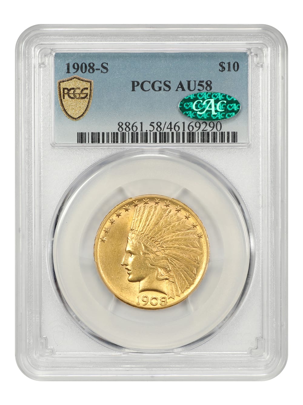 10. 1908-S $10 PCGS/CAC AU58