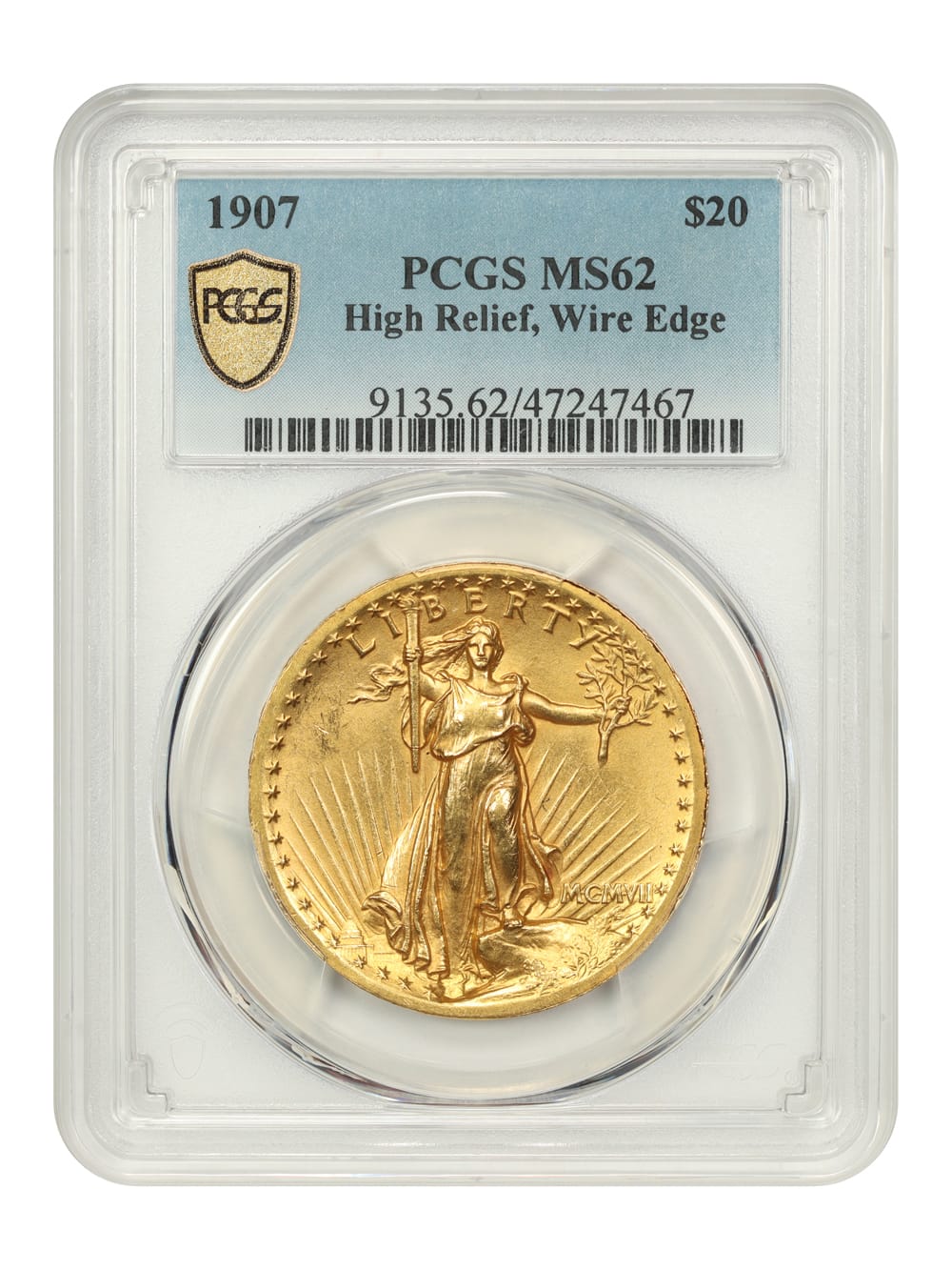 11. 1907 $20 High Relief PCGS MS62 (Wire Edge)