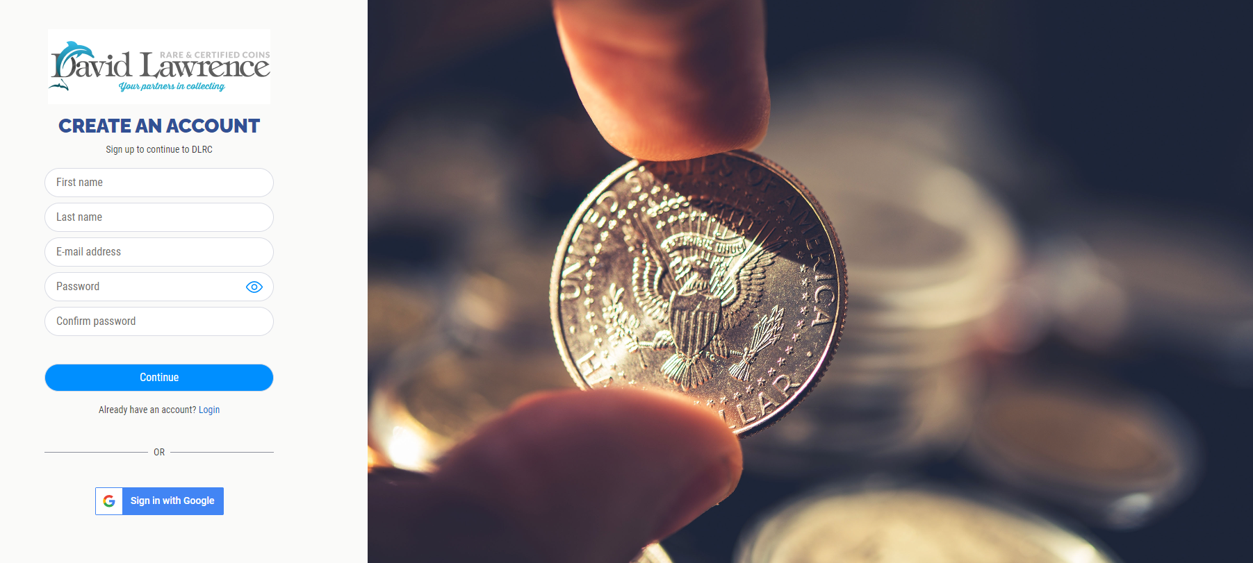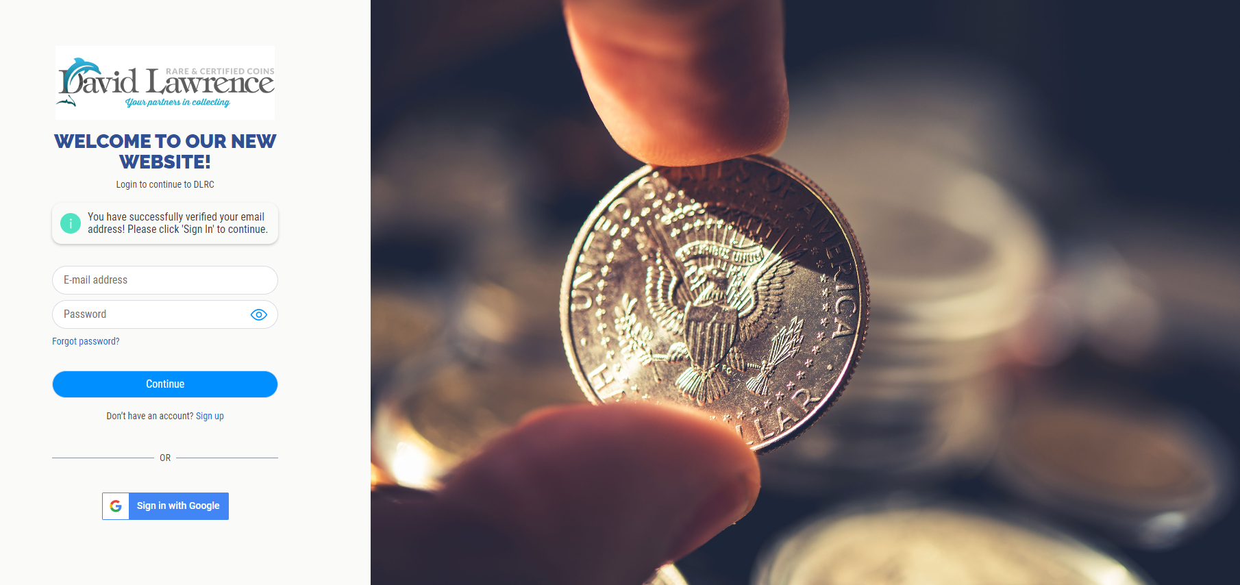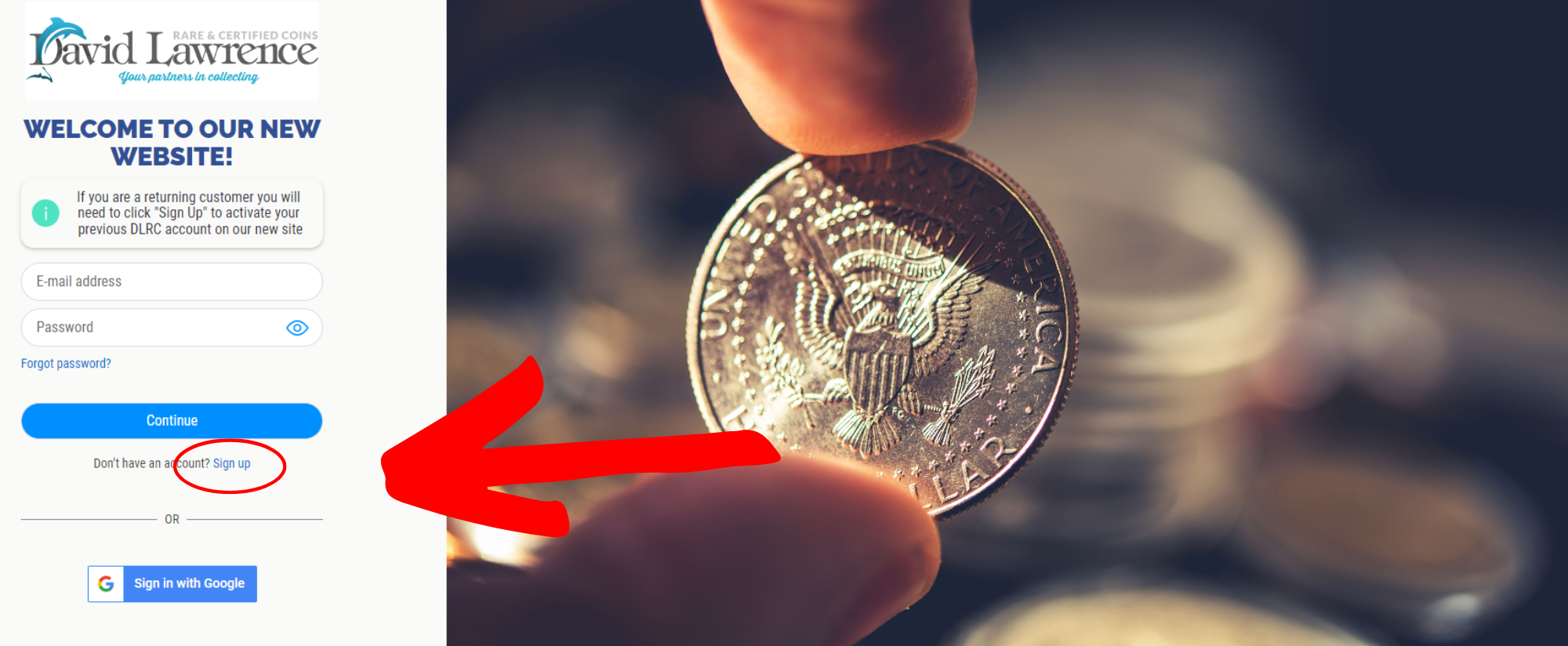 The new and improved www.davidlawrence.com is launched and ready! As a returning customer, we want to make sure the transition is as smooth and seamless as possible. Please follow the steps below to access your DLRC account. Following these steps will ensure that you are able to see all of your past transactions with DLRC. If you have any questions or concerns, please don’t hesitate to reach out to us via email at coins@davidlawrence.com or give us a call at 800-776-0560 and we’ll be ready to assist.